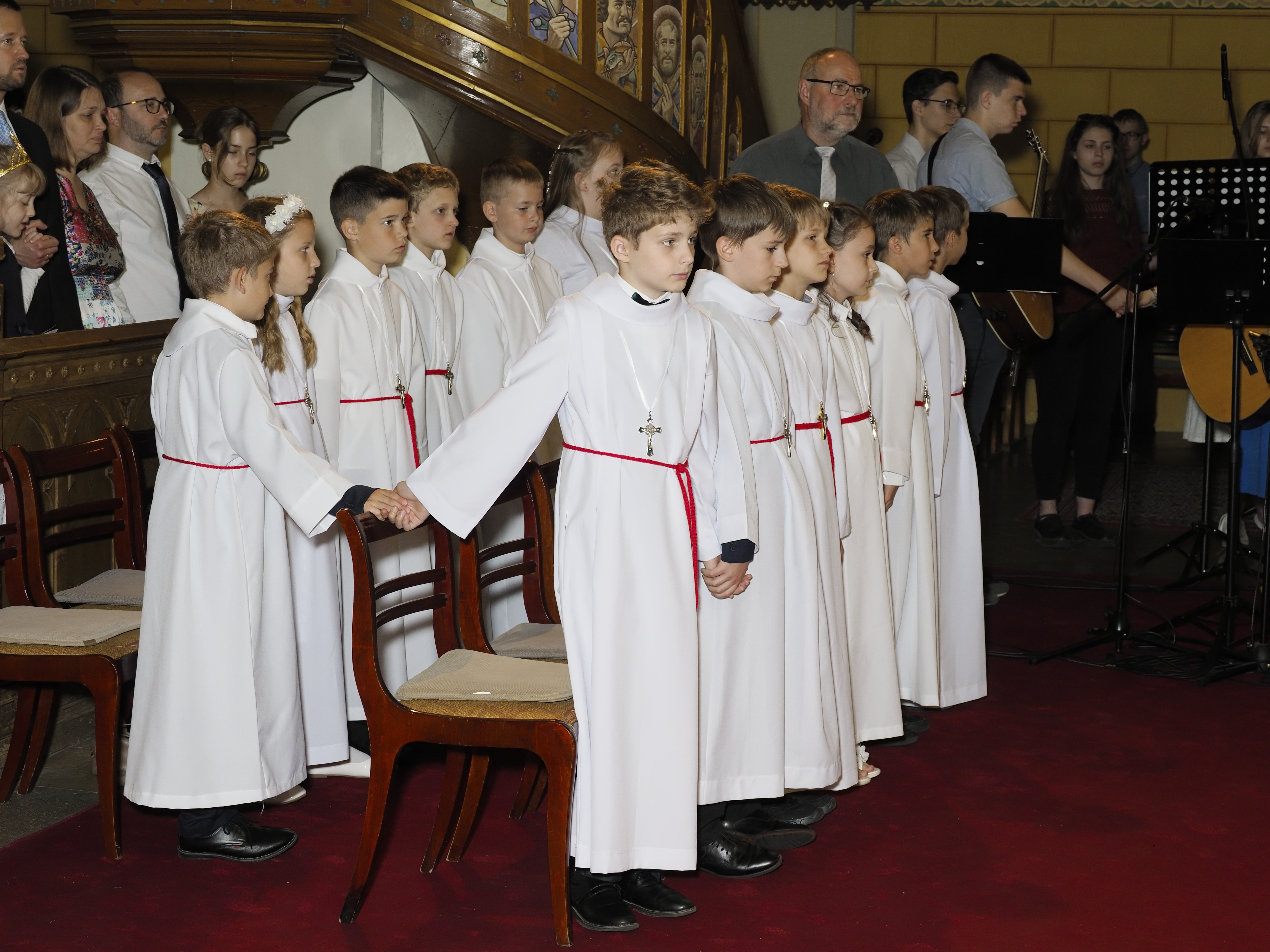 A jövő vasárnap lesz az elsőáldozásra készülő gyerekek elsőgyónása és beöltözése, fogadalomtétele a 9 órai szentmisében. Ebben az évben 10 gyerek készül a májusi elsőáldozásra.