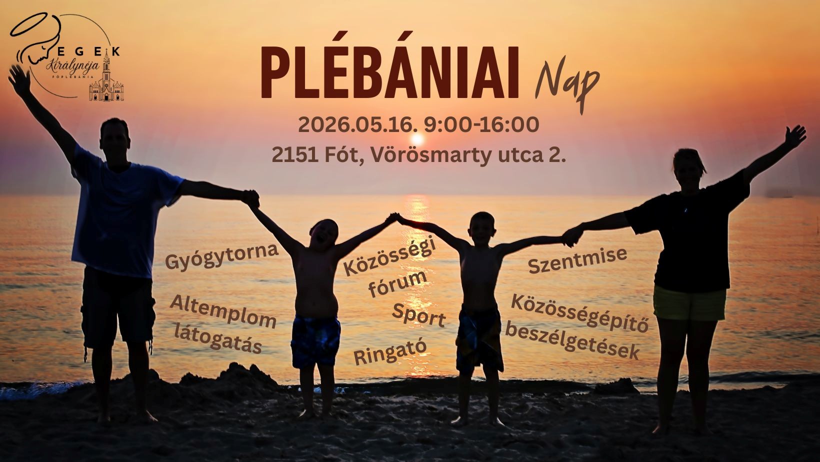2026. május 16. szombaton 9-16 óra között tartjuk a plébániai közösségi napunkat a fóti Szeplőtelen Fogantatás templom kertjében és közösségi házában (2151, Fót, Vörösmarty utca 2.)